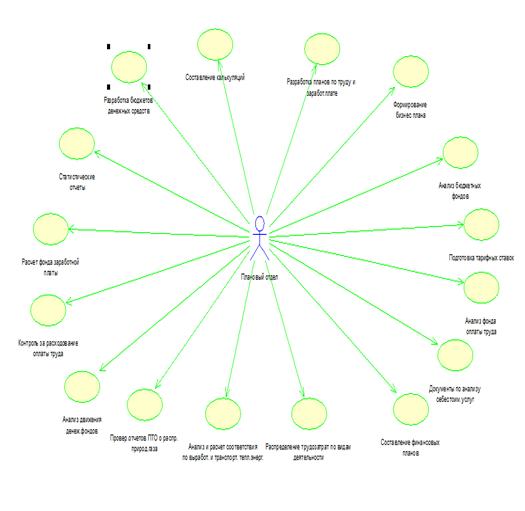 Диаграмма вариантов использования «плановый отдел», отражает функции: