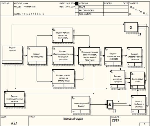Диаграмма IDEF3 «Формирование основного бюджета» описывает логическую последовательность процесса бюджетирования в плановом отделе. (рис. 6).