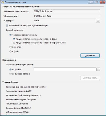 Компонента Регистрация системы DIRECTUM предназначена для запроса и активации регистрационного ключа системы DIRECTUM