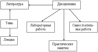 · определение связей между ними, отражающих логические связи внутри дисциплины; соотнесение к видам занятий (лекционный материал, практика, лабораторные работы, курсовые проекты, самостоятельная работа);