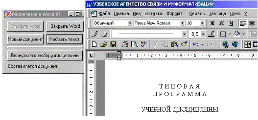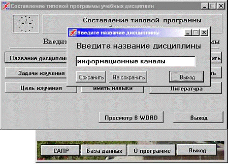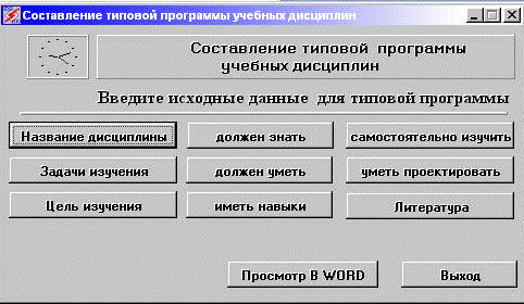 Входными данными являются сами типовые программы дисциплин, а также ввод связей между ключевыми словами. Выходными данными являются полученные типовые программы в формате MS Word, с расширением *.doc.