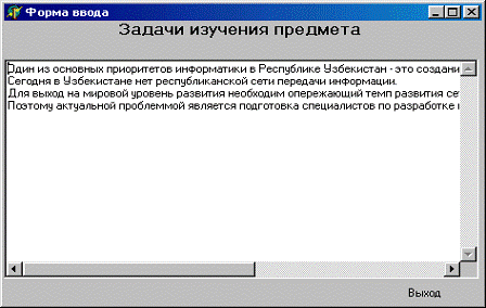 форме, представленной на рис.16, появляется форма ввода данных, представленная