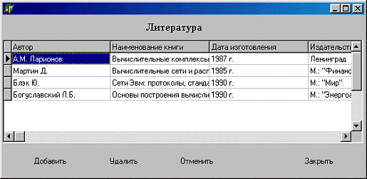 "Литература" на форме, представленной на рис.2.13. Литературу, относящуюся