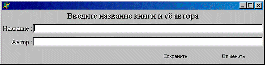 Рис 2.17. Окно ввода названий книги и автора.