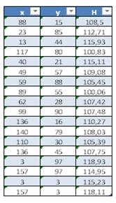 Для выполнения данной работы мы составили таблицу координат точек: Х, У, Н (Рисунок 3).