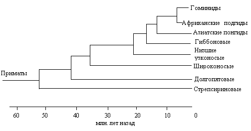 Рис. 1. Эволюционные связи основных групп современных приматов1