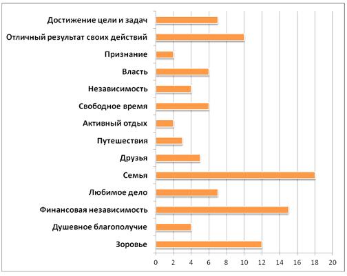 Для подавляющего большинства опрошенных, «жизненный успех» - это благосостояние семьи и родственников, финансовое благополучие и здоровье, также для многих это удовлетворение от результата своих действий и поступков, достижение поставленных целей и задач, заниматься любимым делом, иметь власть и свободное время.