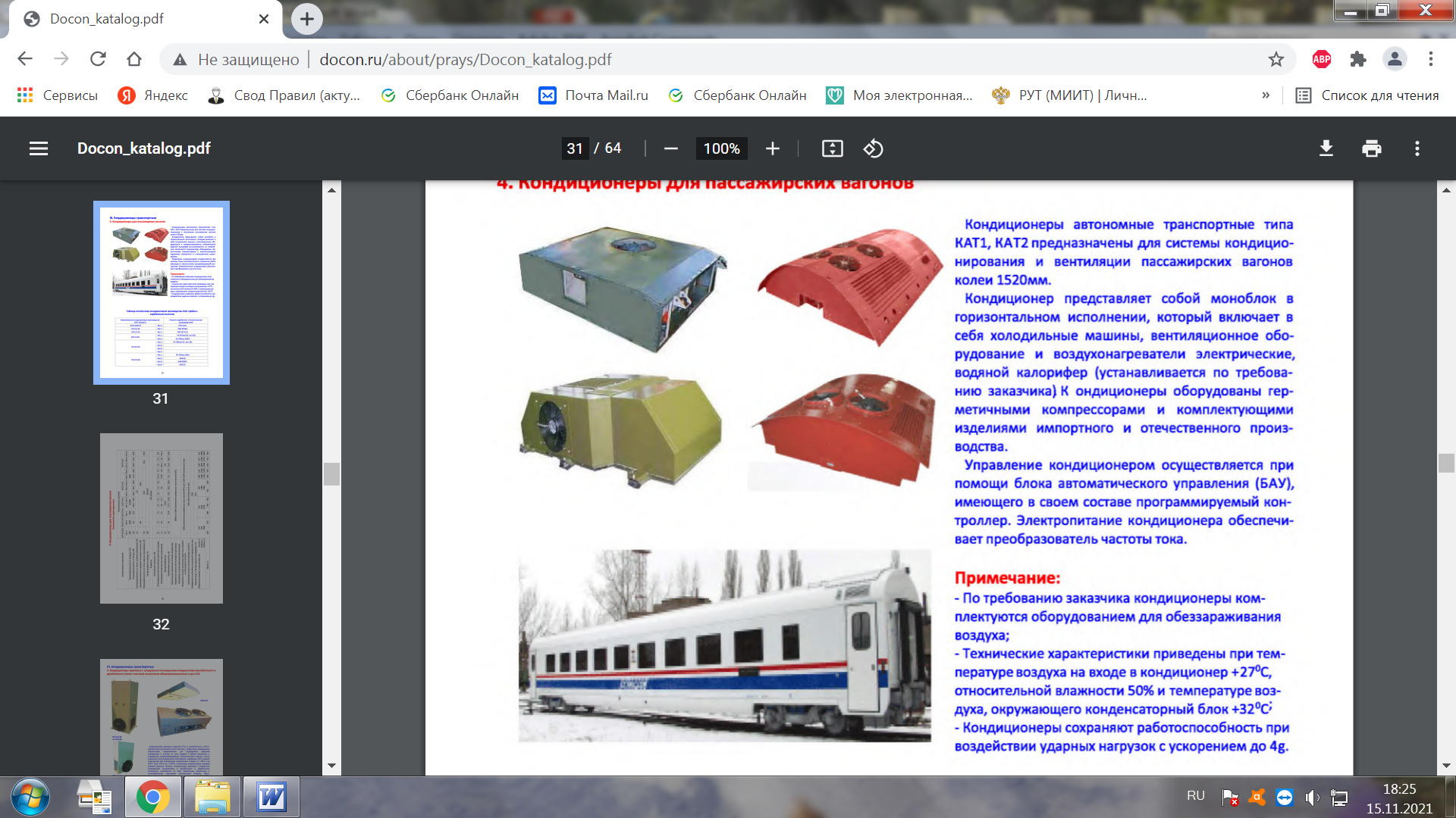 Таблица 12 - Кондиционирующие установки для вагонов