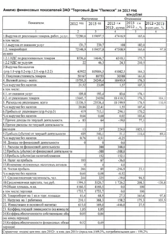 Товарооборот «Пиццерии» за 2013г. составил 2546234,1 тыс.руб, а товарооборот ЗАО «Палессе» - 8388 млн. р. Товарооборот «Пиццерии» составил 30,4%.