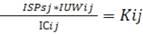 де і - номер господарства, для якого здійснюють оцінку (і = 1..М, N - кількість господарств району); і - галузь виробництва продукції рослинництва (і = 1..М, М - кількість видів виробництва на підприємстві); Кіі - показник ефективності виробництва; ІСіj - індекс собівартості j-ї галузі виробництва рослинницької продукції в і-му підприємстві; IUWij- індекс частки виручки від продажу j-го виду продукції у загальній виручці і-го підприємства.