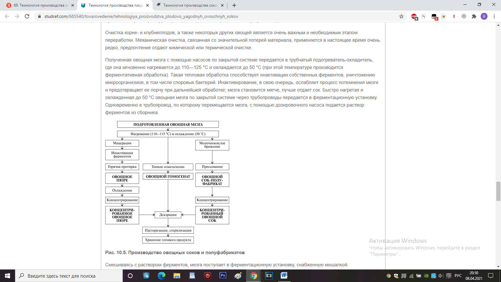 Рис. 10.5. Производство овощных соков и полуфабрикатов