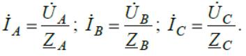 İa = Úa / Za = Ya Úa; İb = Úb / Zb = Yb Úb; İc = Úc / Zc = Yc Úc.