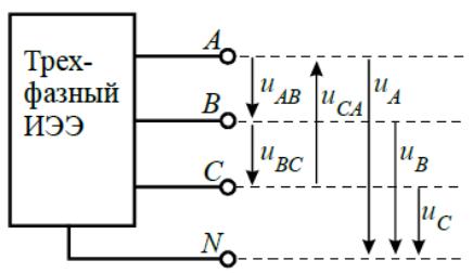 Выводы А, В, С называются фазными, а вывод N называется нейтральным или нулевым.
