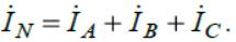 Ток в нейтральном проводе связан с линейными токами законом Кирхгофа в комплексной форме: