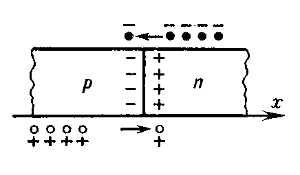 Электронно-дырочный переход (сокращенно р-n переход) представляет собой одну из разновидностей электрического перехода — слоя в полупроводнике, образующегося между двумя его областями с различными типами электропроводности, различными значениями удельной проводимости или различными материалами полупроводников с неодинаковой шириной запрещенной зоны. Электронно-дырочный переход образуется на границе двух полупроводниковых сред, обладающих различным типом электропроводностей, созданных в едином кристалле полупроводника. Следует иметь в виду, что р-n переход нельзя получить простым соприкосновением двух полупроводников с различным типом электропроводности, так как в месте соприкосновения неизбежны зазоры, загрязнения поверхностей и другие дефекты, нарушающие единую структуру кристаллической решетки.