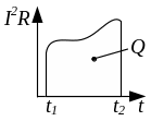 Тобто, щоб визначити кількість теплоти, що виділяється при протіканні змінного струму, потрібно вираз I2R про інтегрувати за часом від моменту t1 до t2 . На координатній площині (I2R, t) кількість виділеного тепла дорівнює площі криволінійної трапеції, яка зверху обмежена графіком залежності I2R = f(t). (див. рис. 4.19). Формула (4.12) – це закон Джоуля у звичайній формі.