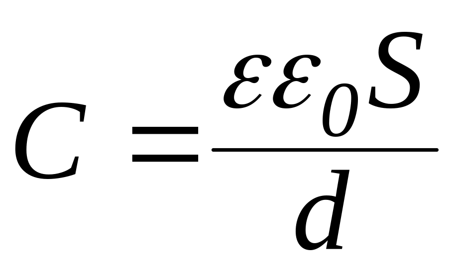 де S – площа обкладинки, d – відстань між обкладинками, ε – відносна діелектрична проникність середовища між обкладинками.