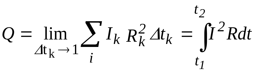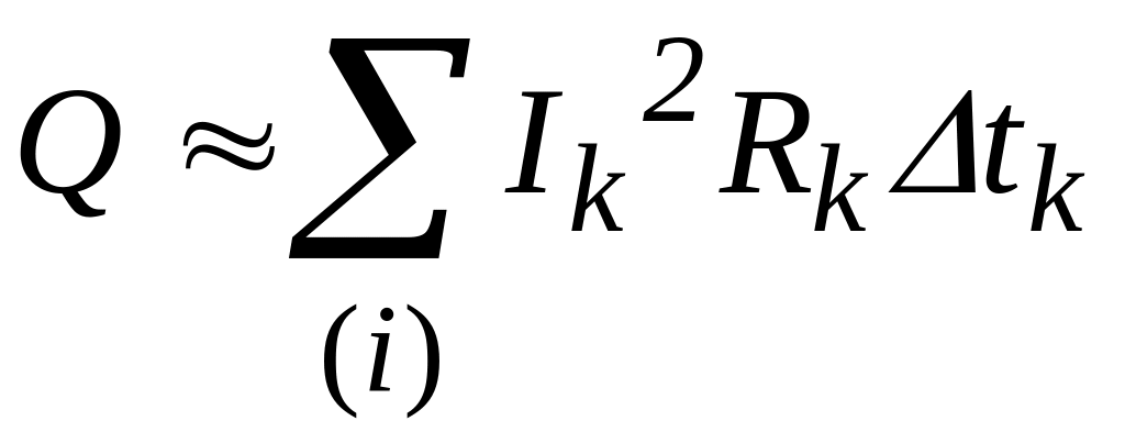 Для змінного струму весь час протікання струму потрібно розбити на елементарні проміжки часу Δtk , настільки малі, що струм Ik на кожному проміжку часу, можна вважати незмінною величиною і тоді