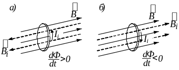 Правило Ленца. Напрямок індукційного струму визначається за правилом Ленца: індукційний струм завжди направлений так, що своїм магнітним полем протидіє зміні магнітного потоку, що його породив (див. рис. 5.18).