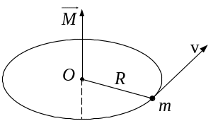 Вектор перпендикулярний до площини кола. Напрям вектора і напрямок руху частинки утворює правогвинтову систему. При рівномірному русі частинки по колу момент імпульсу залишається постійним і за модулем, і за напрямком.