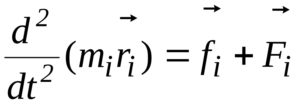 2.9.3. Основні рівняння динаміки обертального руху. Абсолютно тверде тіло можна розглядати як систему частинок (матеріальних точок) з незмінними відстанями між ними. Для системи, що складалася з двох частинок, було отримане рівняння (2.24)