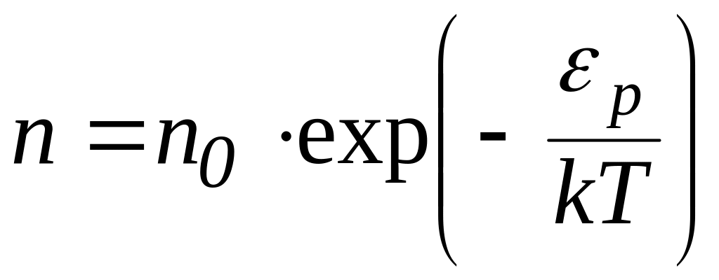 де n – кількість молекул в одиниці об’єму з потенціальною енергією k ; n0 – кількість молекул в одиниці об’єму з потенціальною енергією p=0. Молекули розподілені з більшою густиною там, де менша їх потенціальна енергія.