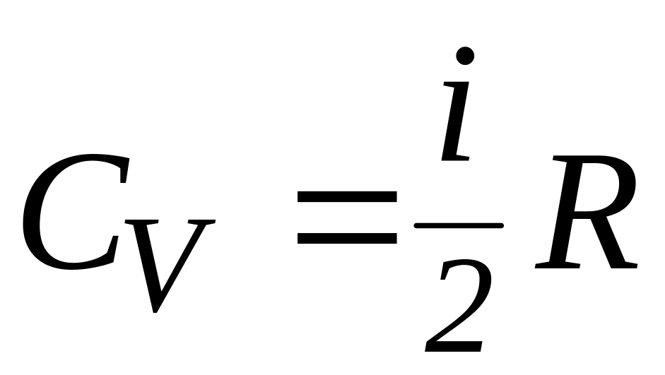 nпост – кількість поступальних ступенів вільності; nоб – обертальних, nкол – коливальних (коливальні ступені вільності мають вдвічі більшу енергоємність, ніж поступальні й обертальні, і тому у формулу (3.2) вони входять подвійно). При невисоких температурах коливальні ступені вільності не збуджені і число ступенів вільності дорівнює: i = 3– для одноатомних молекул; i = 5 – для двохатомних молекул; i = 6 – для трьох (і вище) атомних молекул (тобто як і для твердого тіла).