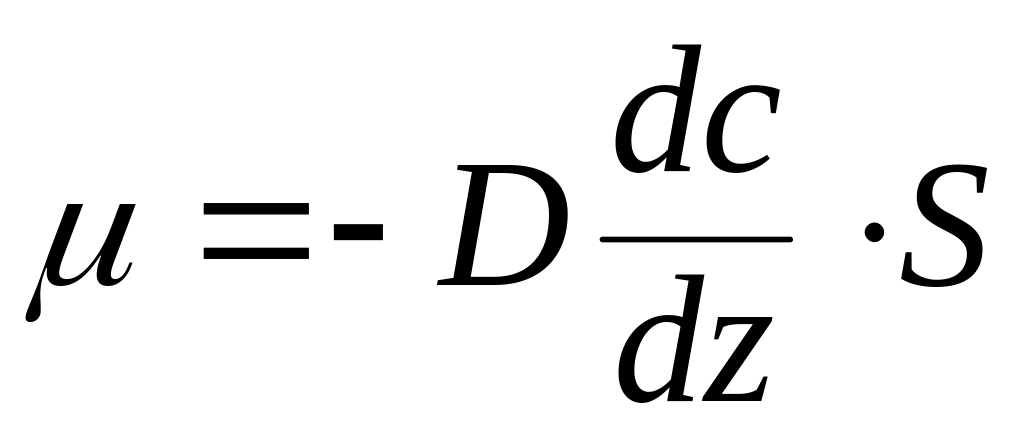 який чисельно рівний потоку маси через одиничну площадку при одиничному градієнті концентрації. Коли концентрація вирівнюється, дифузія припиняється.