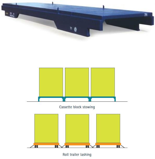 Пустые кассеты можно укладывать друг на друга, что экономит пространство как на борту судна, так и на территории терминала. В кассетах нет подвижных или расходных деталей, таких, как колеса и подшипники,