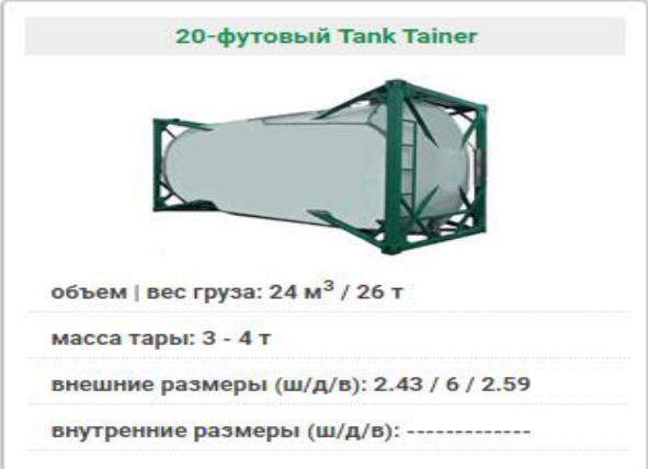 Морской танк-контейнер (20 Tank) – контейнер представляет собой цистерну, вмонтированную в металлическую раму (каркас), которая предназначена для доставки наливных грузов различных типов – пищевых,