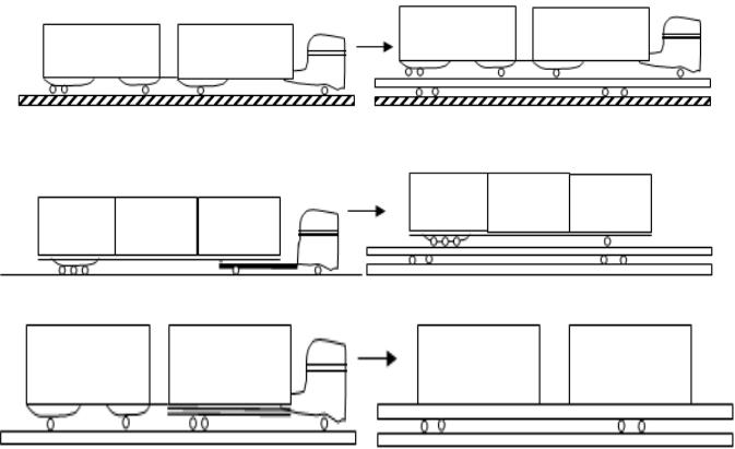 Создание железнодорожных платформ с углубленными карманами в днище, куда опускаются колеса автопоездов и автотрейлеров. Такая технология