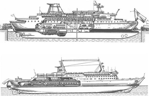 Автотранспорт размещается на палубах, пассажиры – в надстройке.