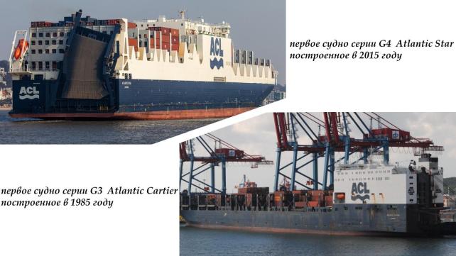 м) чем у ролкеров-контейнеровозов серии G3, что значительно упростило погрузку и выгрузку негабаритных грузов. Технические характеристики ролкера-контейнеровоза Atlantic Star: водоизмещение - 100430 тонн; длина -