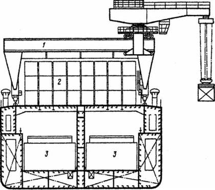 1 - передвижной кран; 2 - контейнеры; 3 – лихтеры.