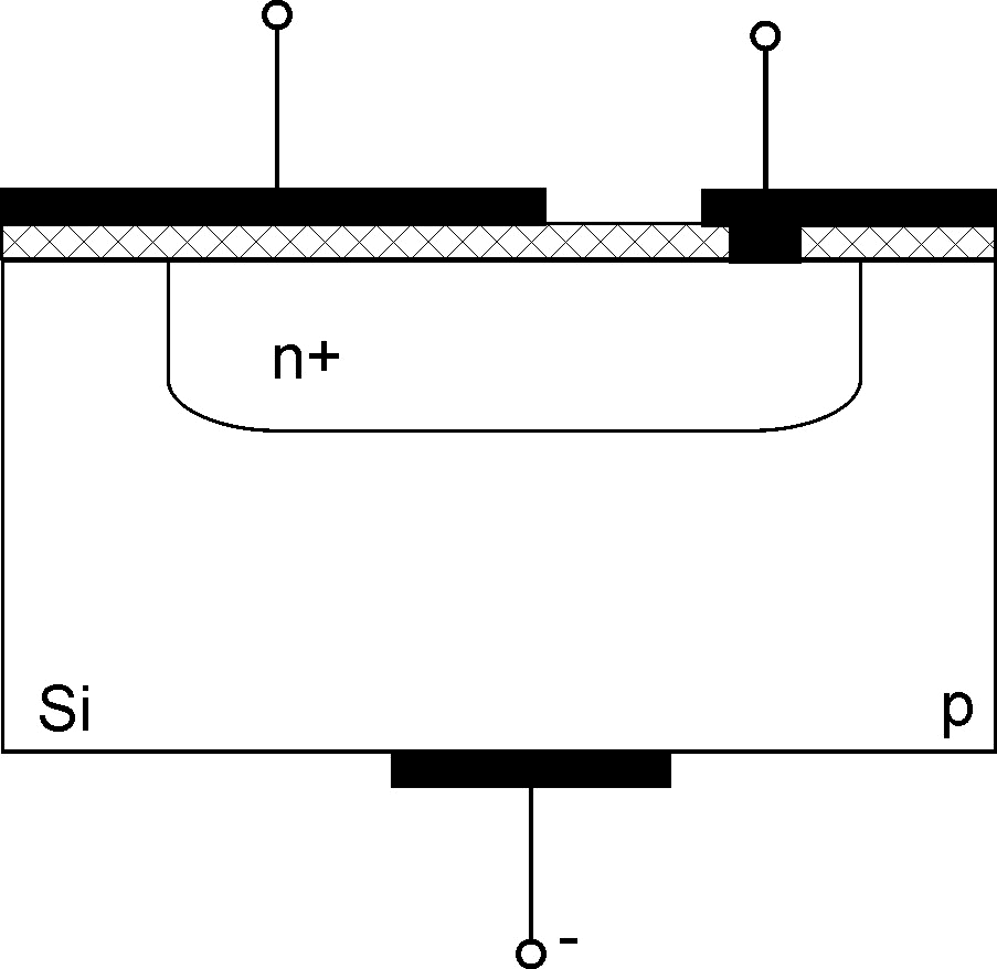 Однією обкладкою є дифузійний шар n+, на якому створюється плівка SiO2. Поверх цього шару наноситься алюмінієва плівка, яка відіграє роль другої обкладки. Ємність С ≤ 500 пФ, допуск ±25%. У таких конденсаторах, на відміну від дифузійних, немає необхідності строго дотримуватися полярності вмикання. Крім того, в них відсутня нелінійна залежність ємності від напруги.