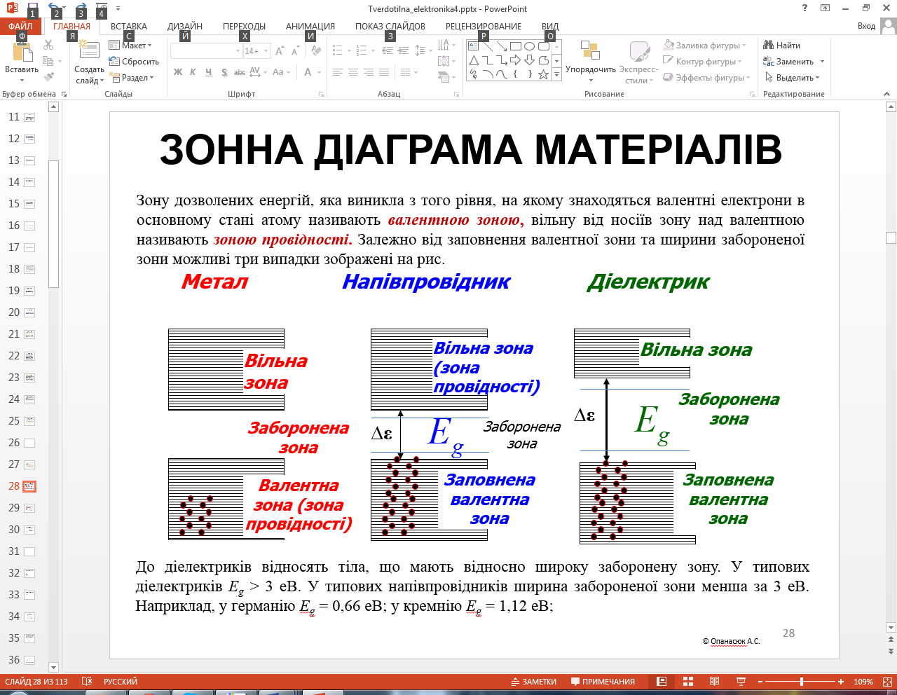 ЗОННА ДІАГРАМА МАТЕРІАЛІВ
