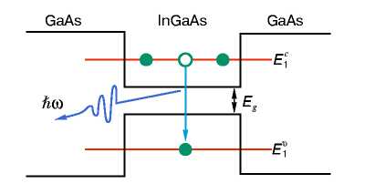 Іншими особливостями напівпровідникових лазерів є високий ККД, мала інерційність, простота конструкції. Типовим представником напівпровідникових лазерів є лазерний діод - лазер, в якому робочої областю є напівпровідниковий p-n перехід. У такому лазері випромінювання відбувається за рахунок рекомбінації електронів і дірок інжектованих в область p-n-переходу. Для отримання лазерного випромінювання також використовують структури з квантовими ямами.