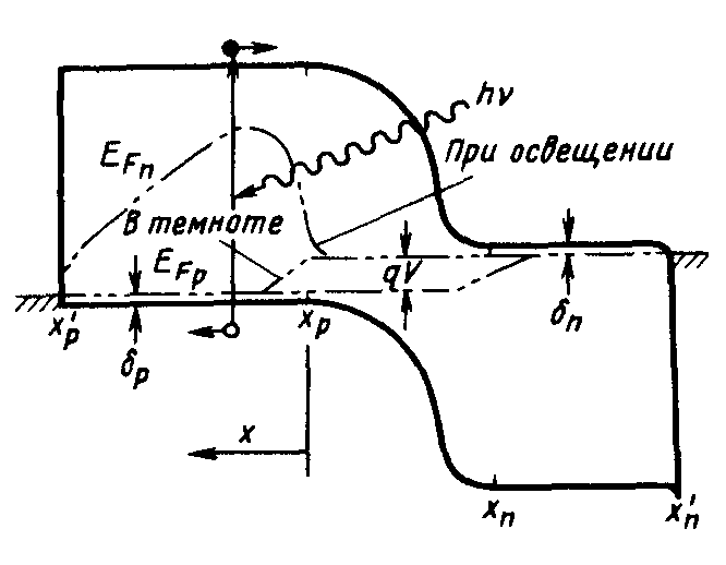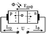 Дія фото ЕРС на p–n перехід еквівалентна додатковому зворотному зміщенню переходу, наслідком чого є збільшення зворотного струму фотодіода на величину IФ .