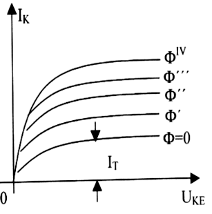Якщо Ф=0, то через фототранзистор проходить невеликий темновий струм
