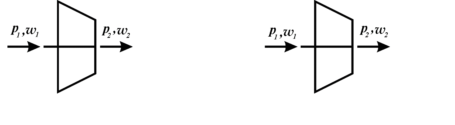 Витіканням називається рух газу через короткі канали особливої форми. Якщо в каналі збільшується швидкість газу, а тиск падає, то такий канал називають сопло. Якщо в каналі зменшується швидкість руху, а тиск збільшується – дифузор. Розрахунковими величинами в процесах витікання є швидкість у вихідному перетині каналу та масова витрата газу. Час перебування газу в коротких каналах невеликий, тому теплообміном між газом і стінкою можна зневажити, що дає можливість вважати процес витікання адіабатним, тоді S=const. Сопло і дифузор виконують свої функції доти, поки швидкість газу на вході в канал менша за швидкість звуку в середовищі витікання. Як тільки вхідна швидкість w1 дорівнює швидкості звуку і більша за неї, то сопло гальмує потік, а дифузор прискорює.
