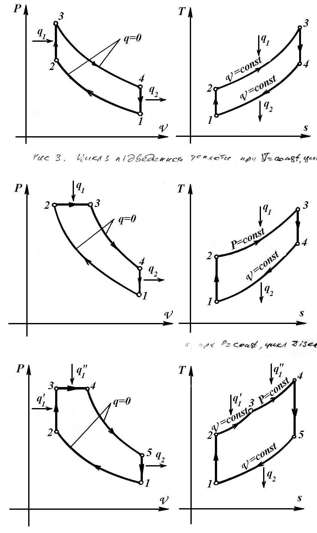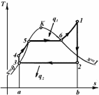 циклів: 1-2 – адіабатне стискування|стиснення|