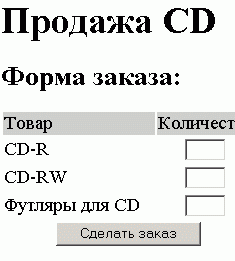Один з найпоширеніших додатків будь-якої мови створення серверних сценаріїв - обробка HTML-форм. Вивчення PHP почнемо з реалізації форми замовлення для вигаданої компанії із продажу компакт дисків. Всі вихідні коди наведені нижче.