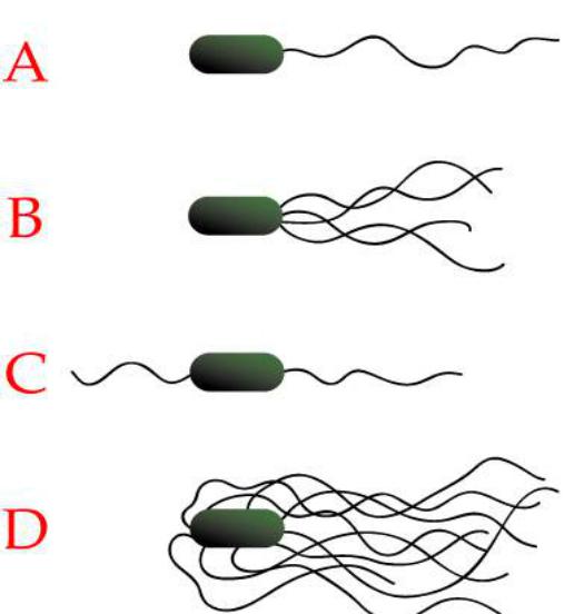 А- монотрихи, В - лофотрихи, С - амфітрити, D - перитрихи.