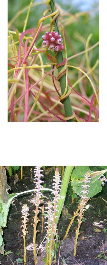 надземні (стеблові) квіткові паразити (повитиця) (рис. 8.1.2.1.) і кореневі квіткові паразити (заразиха) (рис. 8.1.2.2.).