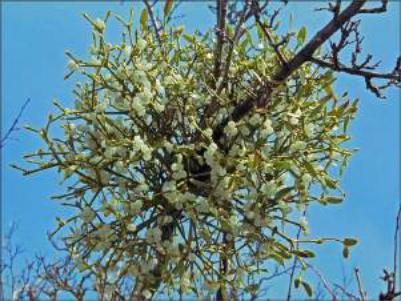 Омела (Viscum album). Це вічнозелені рослина (має хлорофіл), але повністю відсутні корені. Від рослини-господаря омела відбирає воду і мінеральні ре-