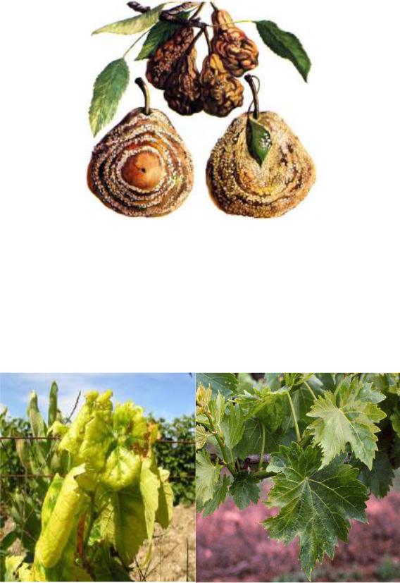 Рис. 1.4.9. Плодова гниль та муміфіковані плоди груші викликані грибним збудником