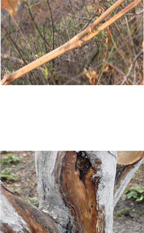 Рис. 2.4.1. Сонячно-морозні опіки та відлупи кори на стовбурі яблуні