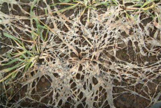 Рис. 2.4.3. Кореневі гнилі викликані грибними патогенами на посівах озимої пшениці