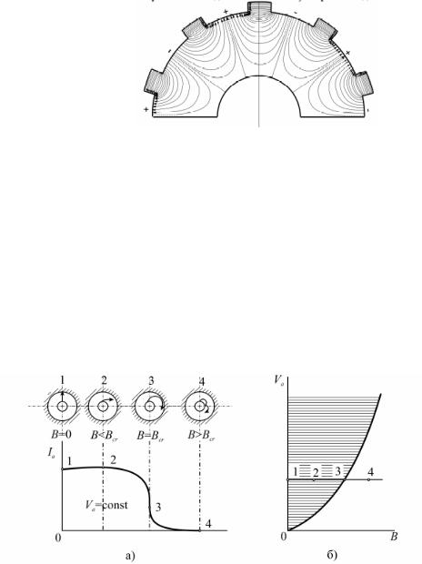 Рисунок 15. Режими роботи магнетрона: а) залежність струму анода від величини індукції магнітного поля;