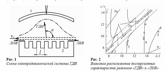 (ВР). ГДB вигідно відрізняються від інших вакуумних джерел О- типу мм і субмм діапазонів довжин хвиль високою стабільністю частоти, вузьким спектром вихідного сигналу, низьким рівнем шумів, широким діапазоном електромеханічної перебудови і порівняно великим рівнем вихідної потужності. У таких генераторах здійснюється розподілена взаємодія електронних пучків із полями періодичних структур при використанні для енергообміну об'ємних електромагнітних хвиль в просторово-розвинених відкритих електродинамічних системах. Ці системи дозволяють здолати принципову перешкоду, що виникає в класичних генераторах при зменшенні довжини хвилі.